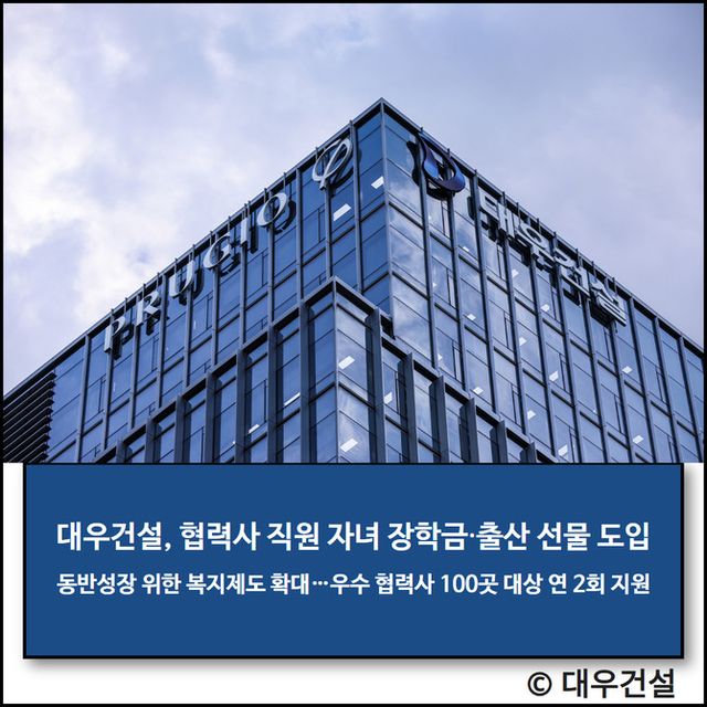 대우건설(047040)이 협력회사와의 상생경영을 한층 강화하기 위해 협력회사 임직원 자녀 장학금 지원과 출산축하 선물 지원 제도를 새롭게 도입한다. 이번 제도는 협력회사 직원들의 생활 안정과 복지 향상에 기여함으로써, 지속 가능한 상생협력 체계를 구축하기 위한 취지다.