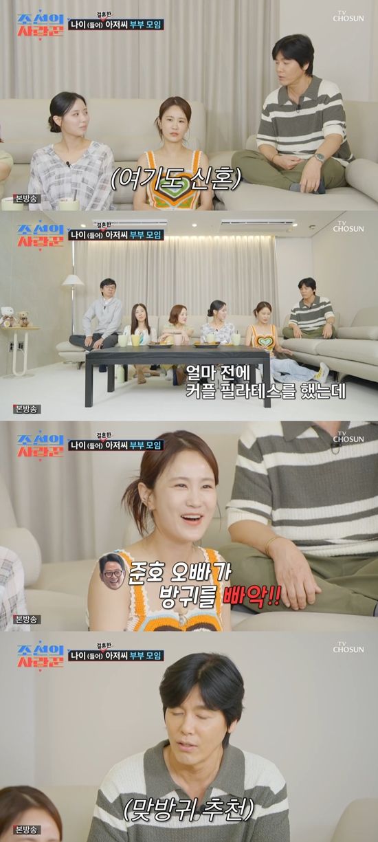 이에 김지민은 "저도 그런다. 얼마 전에 커플 필라테스를 하는데 준호 오빠가 방귀를 뀌는데 너무 정이 떨어졌다. 너무 싫었다"라며 결혼 1개월 차 신혼임에도 스스럼없는 김준호를 폭로했다. 최성국은 "그냥 뀌어버려라. 계속 어떻게 그렇게 사냐. 내 경험상 빨리 트는 게 낫다. 그래야 서로 편하다"라며 조언했다.