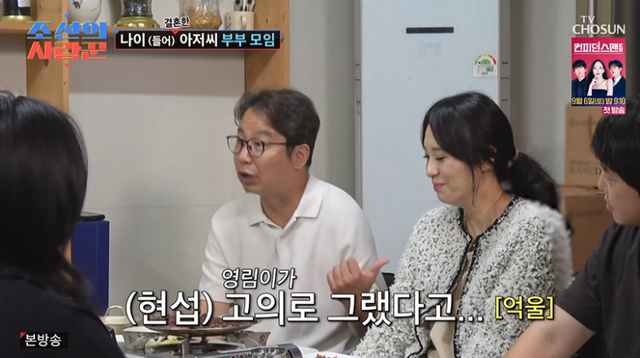 1일 방송된 TV조선 예능 ‘조선의 사랑꾼’에서는 신혼을 즐기고 있는 심현섭 부부가 최성국 부부, 윤기원 부부와 함께 모였다.