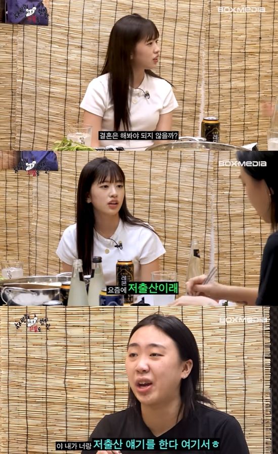 이에 안유진은 "근데 나는 우리가 살면서 결혼을 해봐야 하지 않을까 싶다"고 소신을 밝혔고, 이영지 역시 "인생 한 번뿐인데"라며 공감했다.