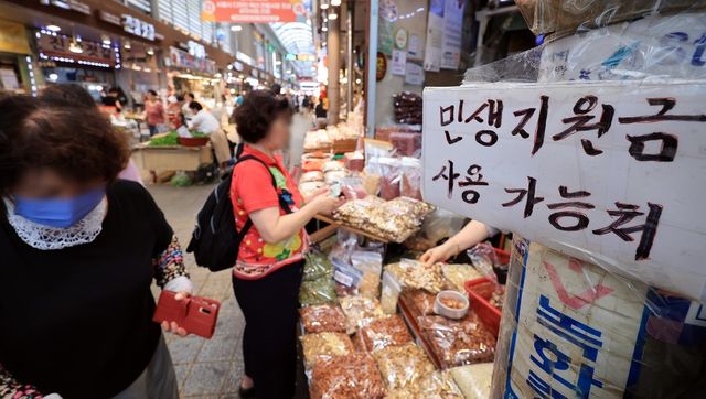 민생회복 소비쿠폰 사용 가능처 안내 문구를 붙여놓은 서울 시내 한 전통시장 / 뉴스1
