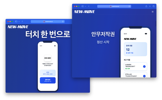 뉴무브는 이러한 문제점들을 개선하기 위하여 등록 절차를 간소화했다. 안무 영상을 업로드 하기만 하면 72시간 내 안무 저작권 등록이 완료되고, 이후 국내외 저작권 위원회들에 등록 대행 후 정산까지 진행한다.
