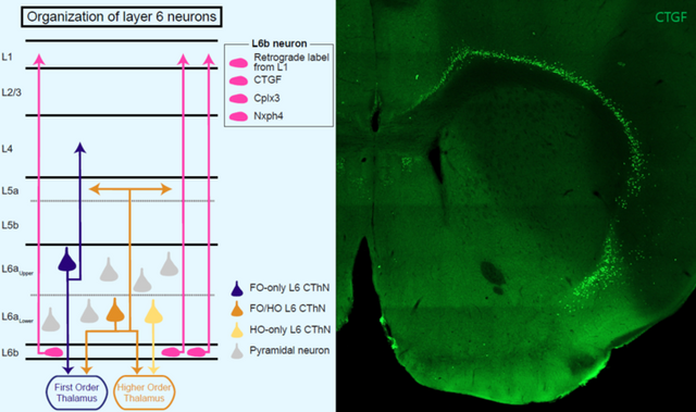 공동연구팀은 L6b 신경세포를 다른 세포들과 명확히 구별할 수 있는 분자마커 표지법, 유전자변형 마우스를 활용해 L6b의 구조와 기능을 밝히고 기존의 잘못된 통념들을 바로잡았다.
