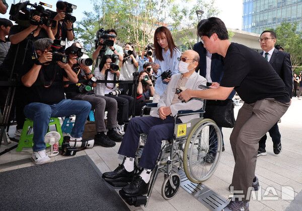 뉴시스 보도에 따르면, 김건희 특검팀(특별검사 민중기)은 2일 오전 10시께부터 이 회장을 소환해 조사한다. 이 회장은 오전 9시59분께 마스크를 착용하고 휠체어에 앉은 채 특검 사무실 앞에 모습을 드러냈다.