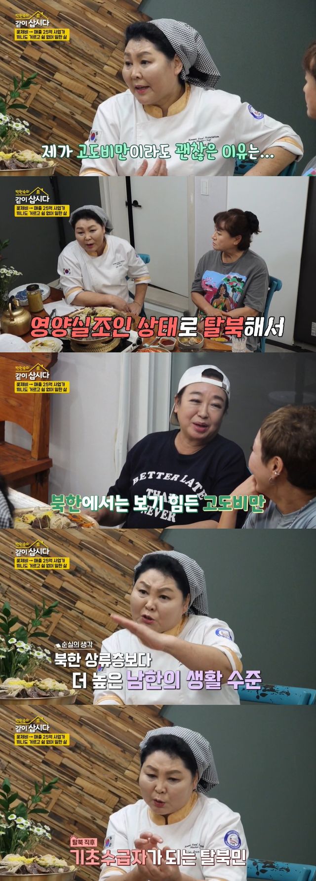 이어 "내가 여기서 상류층이라는 거다. 우리가 사는 지금 생활 수준은 북한의 상류층보다 더 높은 단계에 있다. 탈북민들이 기초수급자 생활을 하지 않냐. 이 기초수급자들과 북한 상류층을 비교하면 탈북민들이 이만큼 올라와 있다"며 개인적인 의견을 밝혔다.