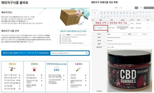 소비자들은 식품의약품안전처가 운영하는 ‘식품안전나라’의 ‘해외직구식품 올바로’ 누리집에서 위해성분이 포함된 제품 여부를 직접 확인할 수 있다. 현재 이곳에는 이번에 적발된 제품을 포함해 총 4075개의 해외직구 위해식품 정보가 등록돼 있으며, 제품명·제조사·성분·사진까지 제공돼 있어 구매 전 반드시 참고해야 한다.