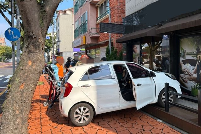 2일 제주소방안전본부에 따르면 이날 오전 9시 41분쯤 제주시 노형동에서 한 경차가 인도를 넘어 상가로 돌진했다는 신고가 접수됐다.