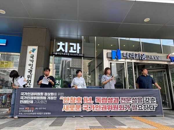 나현필 공동행동 활동가는 "안 위원장이 취임한 지 1년이 다가오고 있다. 1년 동안 안 위원장 아래 인권위는 그동안 쌓아 온 성과를 송두리째 무너뜨리는 혐오적이고 반인권적인 기구였다"며 "더 큰 문제는 앞으로 안 위원장 임기 2년이나 남은 상태에서 더 이상 인권위의 퇴행을 두고 볼 수 없는 인권단체는 수많은 논의를 거쳐 인권위법 개정을 통해 인권위를 정상화해야 한다는 데에 뜻을 모았다"고 말했다.