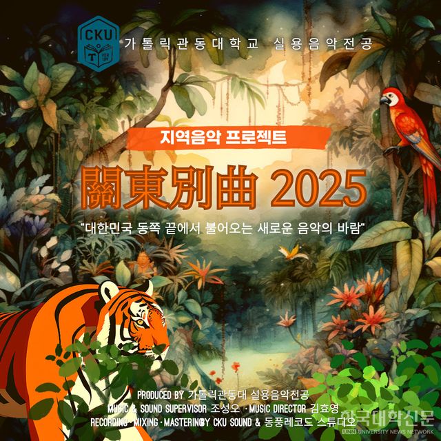 [한국대학신문 김연주 기자] 가톨릭관동대학교(총장 김용승) 실용음악전공이 지역 음악 활성화 프로젝트 일환으로 다섯 번째 앨범 〈관동별곡2025〉를 선보인다.