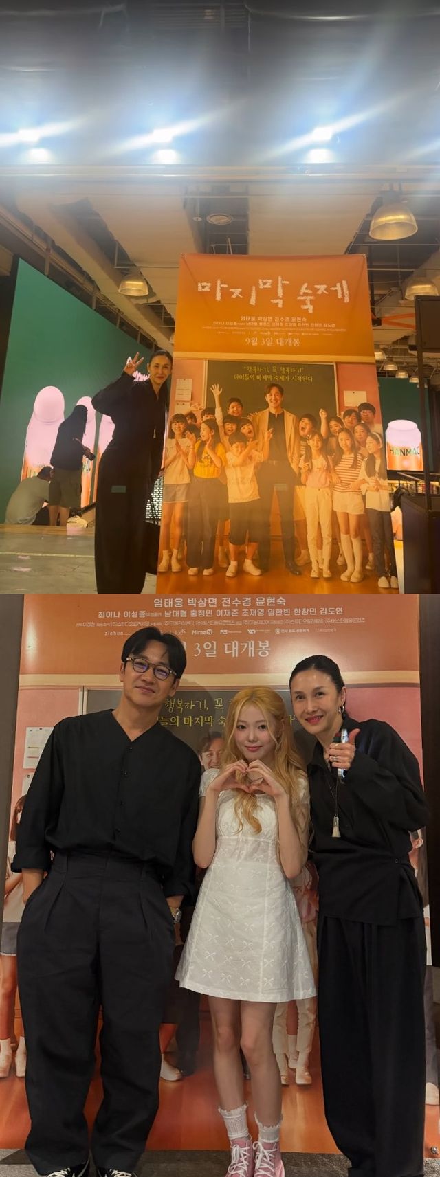 이어 그는 "4년 전 촬영했던 이정철 감독님의 영화 '마지막 숙제' 9.3일 대개봉♥ 이 세상 모든 부모님과 선생님들 그리고 아이들이 모두 다 봤으면 하는 영화! 오랜만에 맘이 몽글몽글 해지는 영화"라는 평을 남기며 "그리고 너무 너무 사랑스러운 아이들, 지금은 훌쩍 커서 못알아 볼 뻔 한 친구들도 있었지만 ㅎㅎ 꼭!! 극장에서 봐주세요"라는 글을 게재했다. 이어 윤혜진은 아역들과 함께 한 사진도 공개하며 엄태웅을 응원했다.