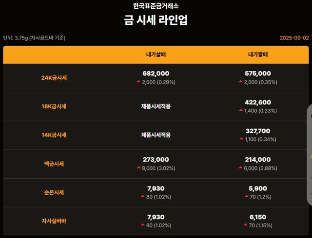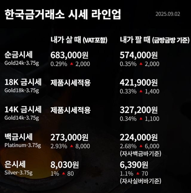 순금(24K) : 매입가 68만 3000원 / 매도가 57만 4000원