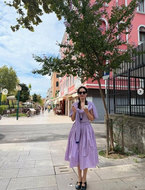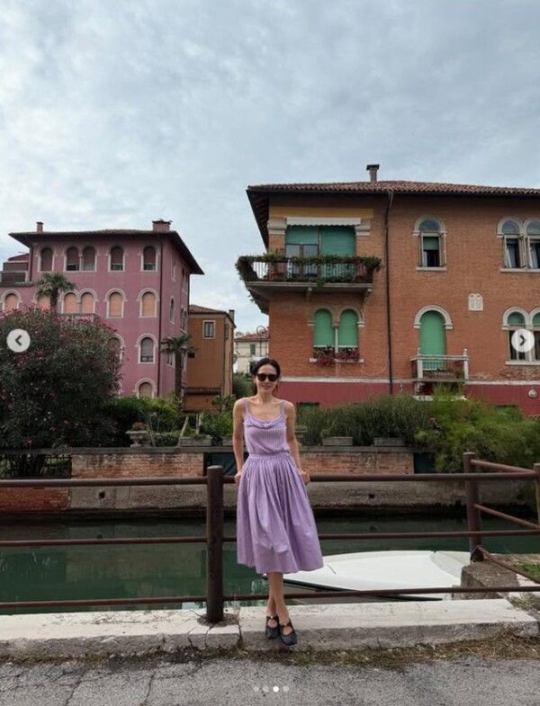 손예진은 지난 8월 31일 자신의 인스타그램에 베니스에서 찍은 여러 장의 사진을 게시했다. 사진 속 손예진은 연보랏빛 롱원피스를 입고 어깨를 드러낸 채 청순하면서도 우아한 매력을 발산했다.