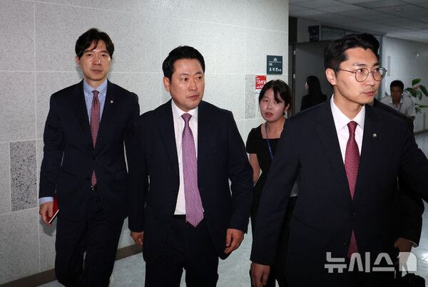국민의힘 지도부와 나경원·조배숙·임이자·김정재·정점식·이인선·이달희·이만희·주진우·강대식 등 의원 30여명은 특검의 압수수색을 대비해 원내대표실을 오가며 지켰다.