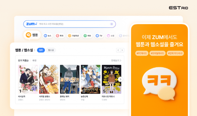 김남현 이스트에이드 대표는 "웹툰·웹소설 전용 섹션 오픈은 이용자의 폭넓은 콘텐츠 니즈를 반영한 결정으로 줌 포털 진화 과정의 중요한 이정표"라며 "금융·생산성·엔터테인먼트를 아우르는 생활형 콘텐츠 허브로 진화하며 새로운 콘텐츠 경험으로 포털 줌의 만족도를 높여가겠다"고 말했다.