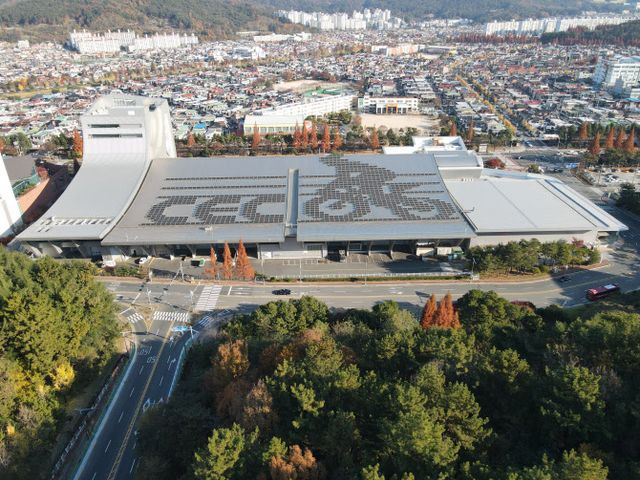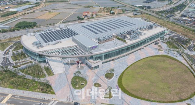 [이데일리 이선우·김명상 기자] 국내 최대 규모 전시장 킨텍스(KINTEX)는 2027년 완공하는 3전시장에 태양광 설비를 도입할 예정이다. 2개 동 구조 전시장 지붕에 일체형 태양광 집열판을 설치해 생산하게 될 전력량은 연간 약 3000MWh(메가와트시). 지난해 킨텍스 전체 전력 사용량 2만 5000MWh의 8분의 1이 넘고, 인근 일산서구 가구 1000세대가 1년간 사용할 수 있는 양이다.