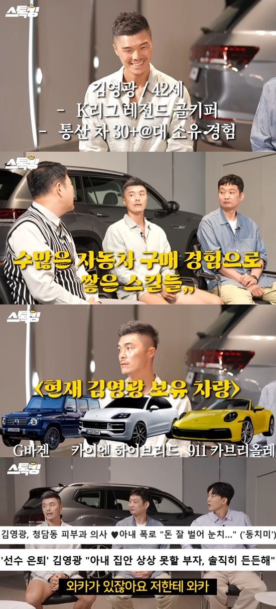 (엑스포츠뉴스 김유진 기자) 전 축구선수 김영광이 자동차를 향한 남다른 애정을 전하며 아내를 언급했다.