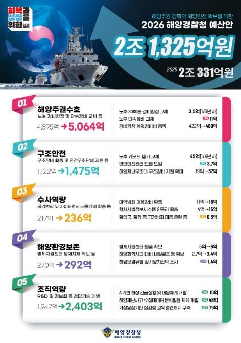 한편, 해양경찰청 2026년도 정부예산안은 국회심의 과정을 거쳐, 올해 12월 초, 최종 확정될 예정이다.