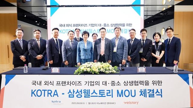 삼성웰스토리와 KOTRA는 3일 성남시 분당 본사에서 ‘외식 프랜차이즈 해외 진출 지원’ 업무협약(MOU)을 체결했다고 밝혔다. 협약 이후 해외 바이어를 초청한 '2025 프랜차이즈 해외진출 상담회(GFBP)'도 이어졌다.