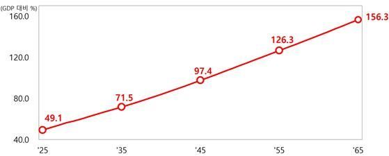 이는 국회 예산정책처(2072년 173.0%)와 한국개발연구원(KDI·2060년 144.8%)의 장기재정 전망과 유사한 수치다.