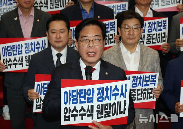 뉴시스 보도에 따르면, 국민의힘은 이날 국회에서 내란 특검의 압수수색 대응 방안을 논의하기 위한 의원총회를 하고, 곧이어 로텐더홀에서 규탄대회를 이어가며 특검을 앞세운 야당 탄압을 중단하라고 촉구했다.