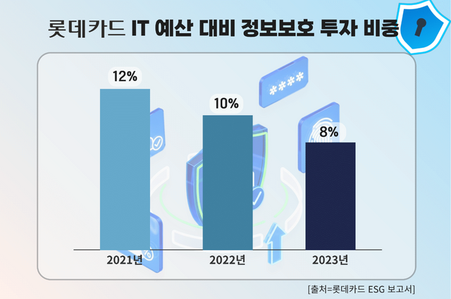 현재 금융권 안팎에선 카드 이용 정보 등의 민감한 자료까지 몽땅 털린 초유의 해킹 사태를 두고 보안에 대한 안일한 인식이 부른 '예견된 인재'라는 지적이 제기되고 있다. 앞서 롯데카드가 보안 관련 예산을 축소하고 관련 교육조차 소홀히 진행한 것으로 밝혀졌기 때문이다.실제로 2021년 롯데카드는 IT 관련 예산의 12% 가량을 정보보호에 투자했으나 2022년에는 10%, 2023년에는 8% 등 해마다 투자 비중을 줄였다. 불과 2년 만에 4%p 가량 감소한 것이다. 반면 같은 기간 전산운용비는 오히려 늘었다. 롯데카드의 전산운용비는 2021년 480억1400만원, 2022년 552억8600만원, 2023년 634억8800만원으로 해마다 늘어났다. 전산운용비란 카드사가 전산 시스템 관리 및 유지·보수에 투입하는 전반적인 비용이다.