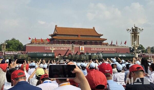 뉴시스 보도에 따르면, 전승절 80주년 열병식이 열린 3일 오전 중국 베이징 톈안먼광장에 3단으로 된 로켓이 분리된 상태로 군 차량에 실린 채 참관객들에게 모습을 선보이자 현장에서는 탄성과 함께 박수갈채가 쏟아졌다.