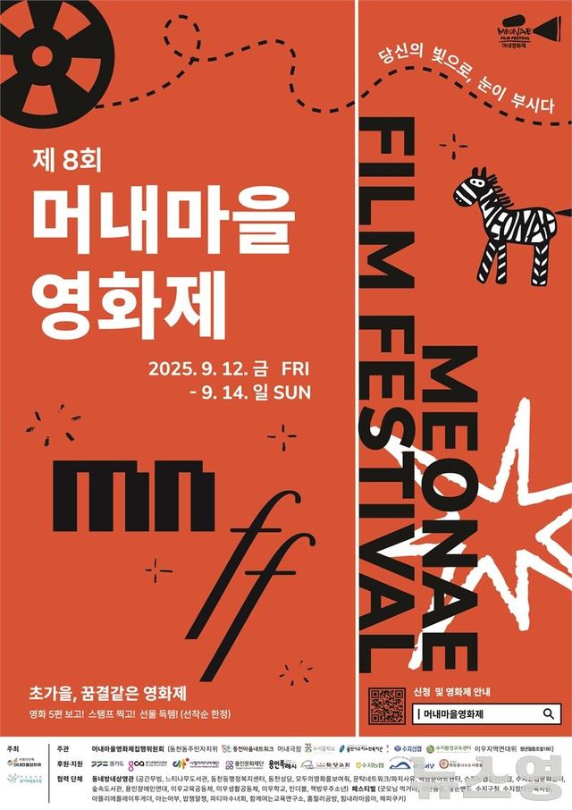 올해 영화제는 ‘당신의 빛으로, 눈이 부시다’를 주제로, 지역의 문화공간과 주민들이 함께 만들어가는 독창적인 영화축제다. 백남준아트센터는 공동 상영관 운영뿐만 아니라, 처음으로 페스티벌 부스 프로그램까지 운영하여 시민들과 더욱 다층적인 만남을 이어갈 예정이다. 올해로 8회를 맞는 머내마을영화제는 비영리법인으로 공식 출범하여 지역 기반 영화제로서의 위상을 한층 공고히 했다. 이번 영화제에서는 15개의 상영관에서 총 56편의 영화가 상영될 예정이다.