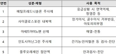 이번에 신규 지정되는 국가필수의약품은 면역억제가 필요한 응급상황 등에서 염증완화 목적으로 사용하는 ‘메틸프레드니솔론 주사제’, 안과질환 등 검사에 사용하는 ‘플루오레세인 점안액’ 등이다.