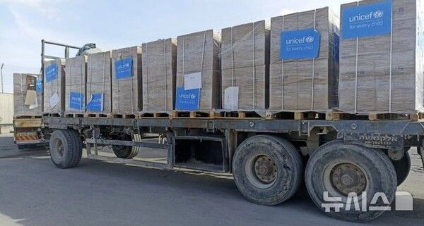 유니세프는 또 컨테이너 25개 분량의 영양 및 필수 의약품을 선적했다고 밝혔다.