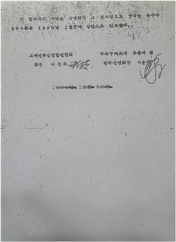 2박3일간 회담을 하고 이윤구 회장은 북경에서 미국 선명회(월드비전) LA본부로 떠나시면서 국제선명회(월드비전)와 고려민족산업발전협의회가 쓴 합의서 한 부를 복사해주며 “이 합의서 복사본은 너에게 아마 평생 기념이 될 거다”라고 하셨는데, 진짜 그리 된것 같다.