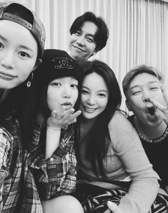 사진엔 MC몽, 이승기·이다인 부부 그리고 이다인 언니인 배우 이유비, 차가원 피아크그룹 회장과 함께 미소 짓고 있는 모습이 담겼다.