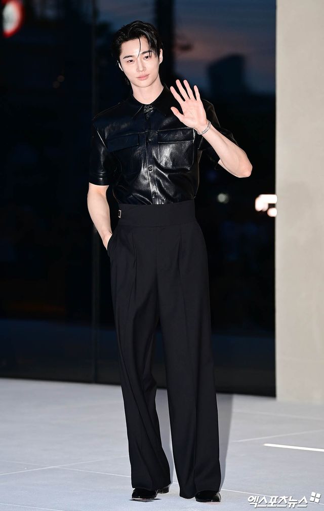변우석은 머리부터 발 끝까지 올 블랙 코디로 등장해 시크하면서도 섹시한 분위기를 연출했다. 가죽 셔츠에 하이 웨스트 팬츠를 착용한 모습이 태평양 어깨와 190cm 체격을 돋보이며 '문짝남' 피지컬을 입증했다.
