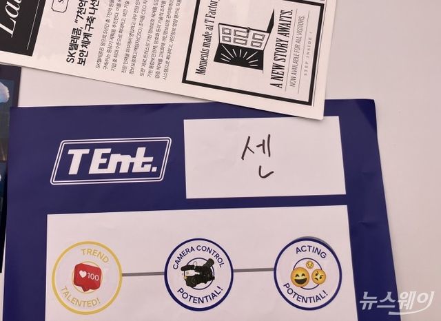 T팩토리 성수에 들어서자마자 눈에 들어온 공간은 'A.X(에이닷 엑스)' 거대언어모델(LLM)을 활용해 만들어진 대형 미디어월이었다. 이를 지나쳐 1층 메인 체험형 전시 공간에 들어서면 가수 연습생이 되고 결국 데뷔하는 과정을 체험할 수 있는 'T 엔터(T Ent.)' 공간이 펼쳐진다.