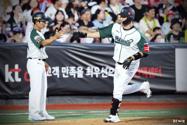 승리 주역은 '4번 타자' 장성우였다. KT 부흥기를 이끈 주전 포수 장성우는 최근 주로 지명타자로 나서고 있다. 이날 그는 자신이 왜 '공격형 포수'로 불렸는지 증명했다.