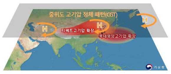 아울러 같은 시기에 북반구 중위도에는 길게 정체된 고기압 구조가 있었는데 고기압이 이렇게 머무는 패턴은 인도의 몬순과 북서부지역의 대류 강화와 관련됐다는 게 기상청의 설명이다. 그 결과 우리나라 상공에도 고기압이 강화되면서 무더위가 한동안 지속됐다.
