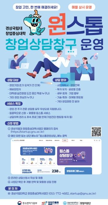 | ▲ 경상국립대학교 창업중심대학사업단 ‘원스톱 창업상담창구’ 안내 포스터 |