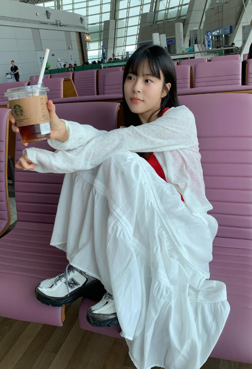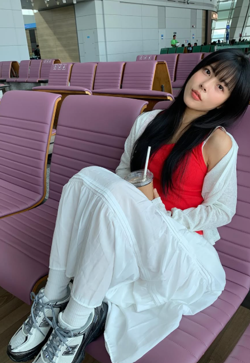 사진 속 민도희는 레드 슬리브리스에 화이트 롱스커트를 매치해 내추럴하면서도 세련된 공항 패션을 완성했으며, 단정한 흑발과 뚜렷한 이목구비로 청순한 미모를 뽐냈다.