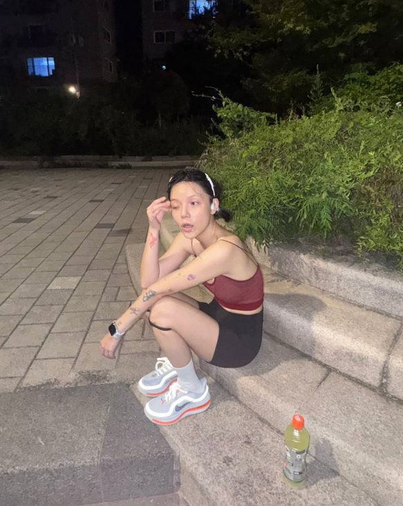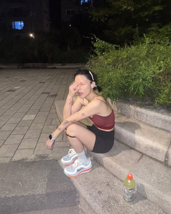 신지민은 4일 새벽 자신의 인스타그램을 통해 심야 러닝 인증샷을 공개했다. 사진 속 그는 계단에 주저앉아 땀을 닦고 호흡을 가다듬으며 회복 시간을 가지는 모습. 열정적인 러닝 후 풀려버린 동공과 초췌한 모습으로 눈길을 끌었다.