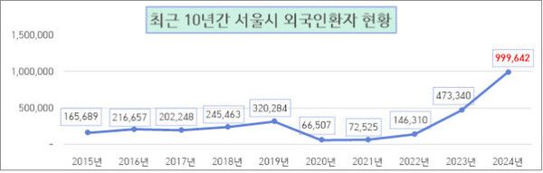 지난해 서울을 찾은 외국인 의료 관광객이 역대 최대 규모인 100만명에 육박했다고 서울시가 4일 밝혔다.