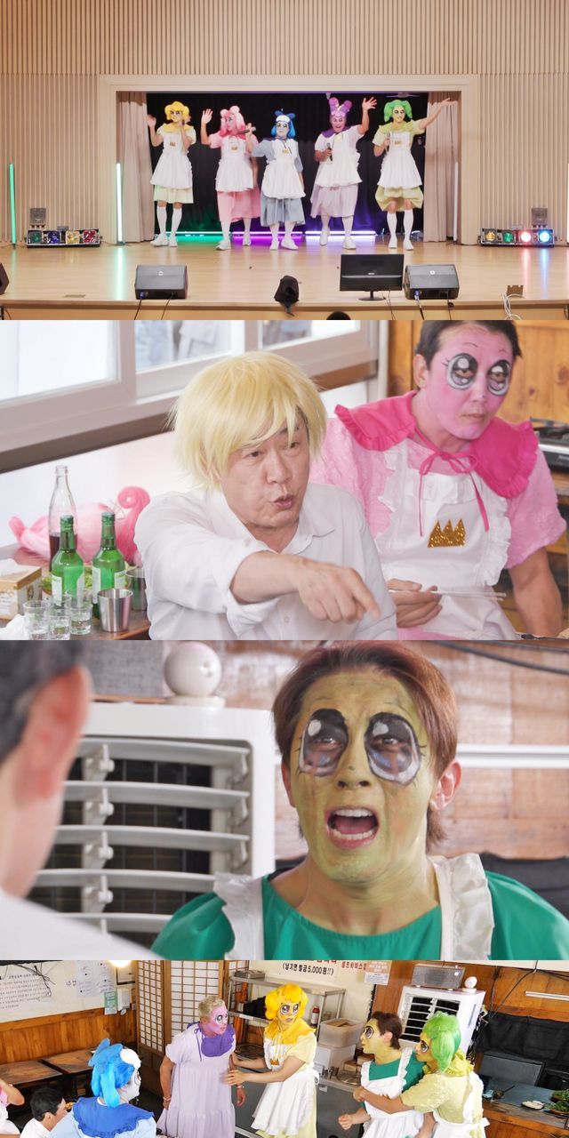 4일 오후 방송되는 5회에서는 어린이 팬심을 저격하기 위해 ‘티니핑’ 분장까지 하고 무대에 오른 트롯돌 ‘뽕탄소년단’의 화려한 무대와 그 뒤를 이은 첫 회식 장면이 전격 공개된다. 그러나 즐겁게 시작한 회식은 순식간에 산산조각 난 팀워크와 함께 폭풍 긴장감으로 번지며 현장은 그야말로 아수라장으로 변했다. 부캐 ‘한라’로 등장한 이수지 앞에서 멤버들이 대놓고 뒷담화를 펼치며 관계에 금이 가자, 웃음이 가득했던 분위기는 단숨에 살얼음판 위처럼 살벌하게 바뀌었고, 특히 매니저 김원훈은 예능계 대부이자 하늘 같은 선배 이경규를 똑바로 쳐다보며 “뽕탄소년단에게 행사 안 들어온다, 아무도 무대에 안 세워준다”는 폭풍 직언으로 프로듀서의 신뢰도를 단숨에 추락시키는 초유의 사태를 일으켰다. 여기에 그치지 않고 “내가 존경하는 선배는 유재석 밖에 없다”는 ‘샤라웃’까지 날리며, 이경규의 분노 버튼을 제대로 눌렀다고.