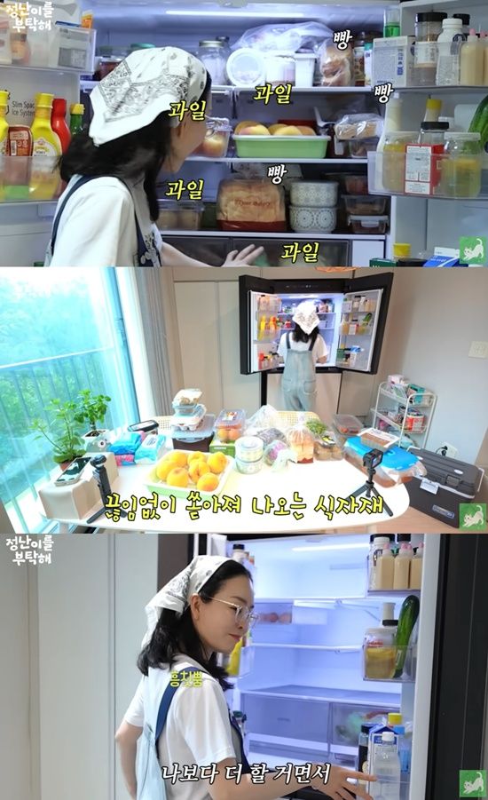 이날 김정난은 대청소를 했다. 그는 냉장고 정리를 위해 식재료까지 미리 준비, "냉장고에 과일만 잔뜩 있다. 내가 과일이랑 빵 이런 거 좋아하지 않나"라며 냉장고 문을 열었다.