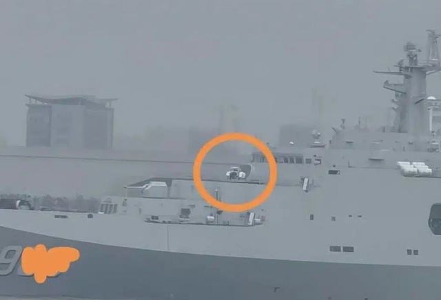 LY-1으로 추정되는 레이저 요격체계가 중국 인민해방군해군의 071형 LPD(수륙양용 수송함)에 탑재된 모습. 웨이보 캡처