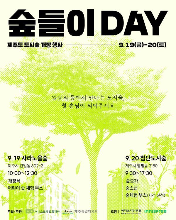 [한라일보] 이니스프리 모음재단이 제주특별자치도와 함께 기업참여 도시숲 개장을 기념한 시민 행사 '숲들이 데이'를 오는 19~20일 연다.