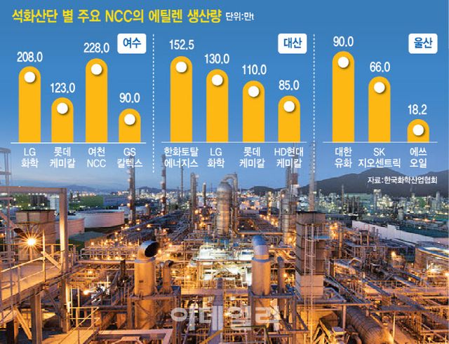 석유화학 사업재편의 핵심인 여수는 우리나라 석화산업의 심장부로 불린다. 여기에만 LG화학, 롯데케미칼, 여천NCC, GS칼텍스 등 4개의 대형 나프타분해설비(NCC) 사업자가 집중돼 있다. 이곳에서 한 해 동안 생산 가능한 에틸렌 규모는 총 649만5000톤(t)에 달한다. 이는 우리나라 전체 에틸렌 생산능력(1295만t)의 절반 수준에 해당하는 규모다. 업계에서 “여수에서 교통정리가 돼야 석화 사업재편이 성공하는 것”이란 얘기가 나오는 이유이기도 하다.