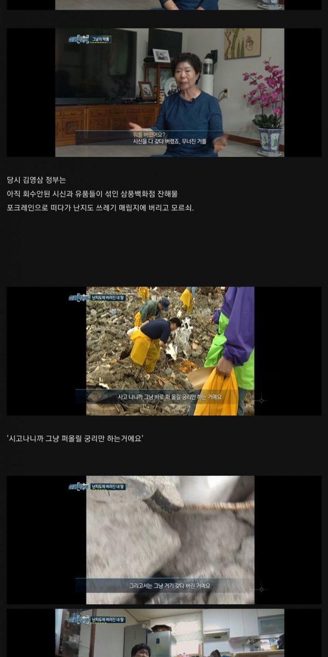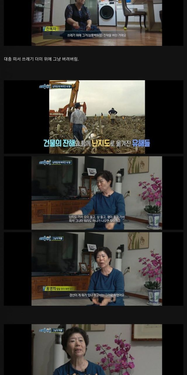 밤낮으로 쓰레기더미 위를 방황하며 가족들을 찾던 것이 트라우마가 됐다고 함.