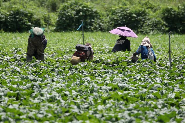 폭염 속 배추밭에서 농민들이 작업 중인 모습 / 뉴스1