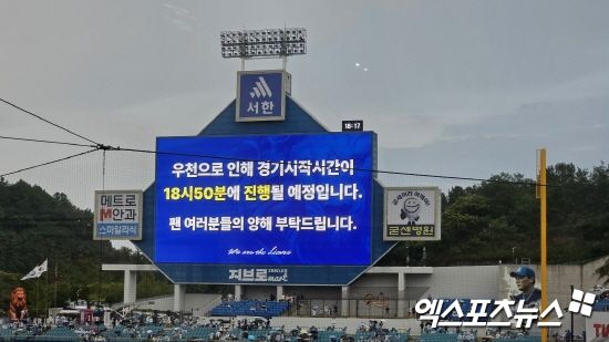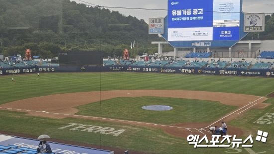 하지만 플레이볼 30여분 앞두고 대구삼성라이언즈파크에 비가 내리고 마운드와 홈플레이트에 방수포가 덮이면서 원래 예정됐던 시간 개시 여부는 불투명하게 됐다.