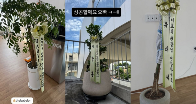 4일 이효리가 운영하는 아난다 요가 공식 계정 ‘아난다 효리’에는 화분 사진이 여러 장 올라왔다. 연예계 동료들이 이효리의 요가원 개업을 축하하기 위해 보낸 것으로, 이들의 따뜻한 메시지도 함께 담겼다.