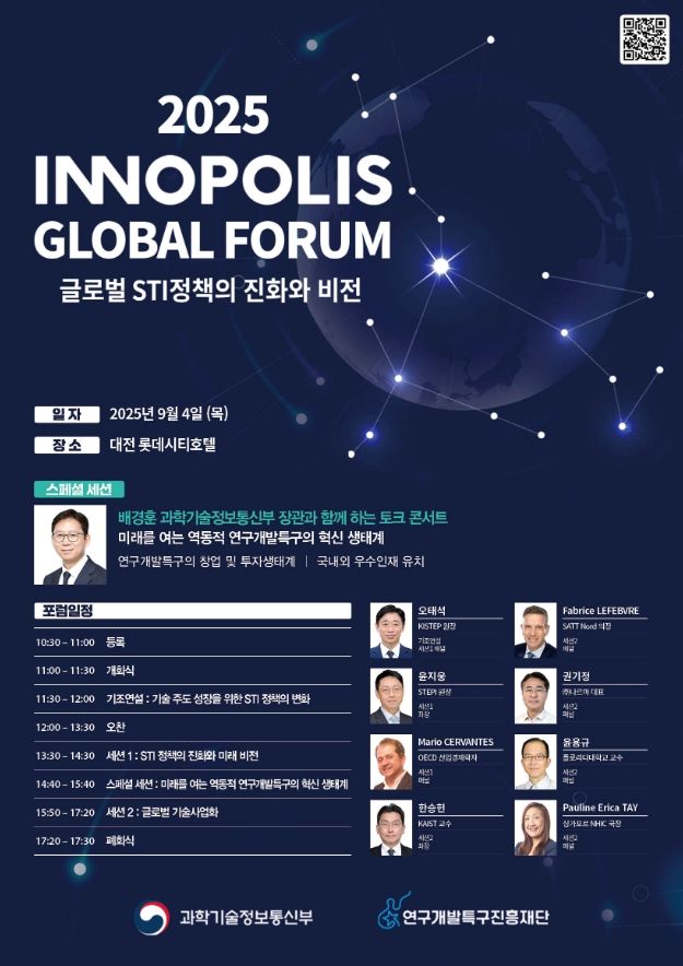 [파이낸셜경제=김영란 기자] 과학기술정보통신부는 9월 4일 대전 롯데시티호텔에서 연구개발특구제도 시행 20년과 연구개발특구진흥재단(이사장 정희권) 창립 20주년을 기념하여 ‘2025 연구개발특구 국제 토론회(글로벌 포럼)’(2025 INNOPOLIS GLOBAL FORUM)을 개최했다고 밝혔다.