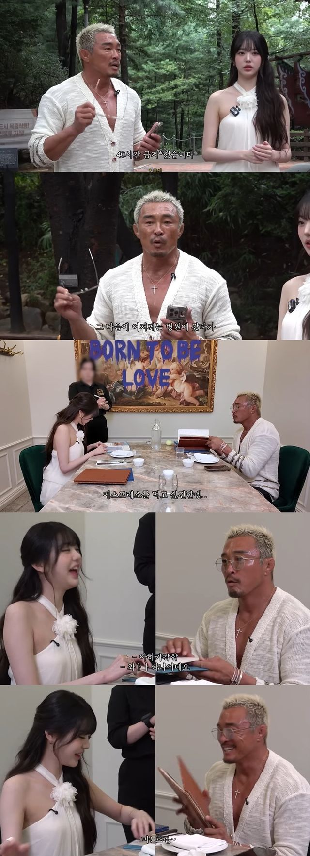 추성훈은 장원영을 만나 아빠 미소를 지으며 "어제부터 만난다고 40시간 금식했다. 아무것도 안 먹었다. 어저께는 병원에서 피부 미용 시술을 받고 왔다"며 장원영과의 만남을 위해 철저한 관리를 했음을 밝혔다.